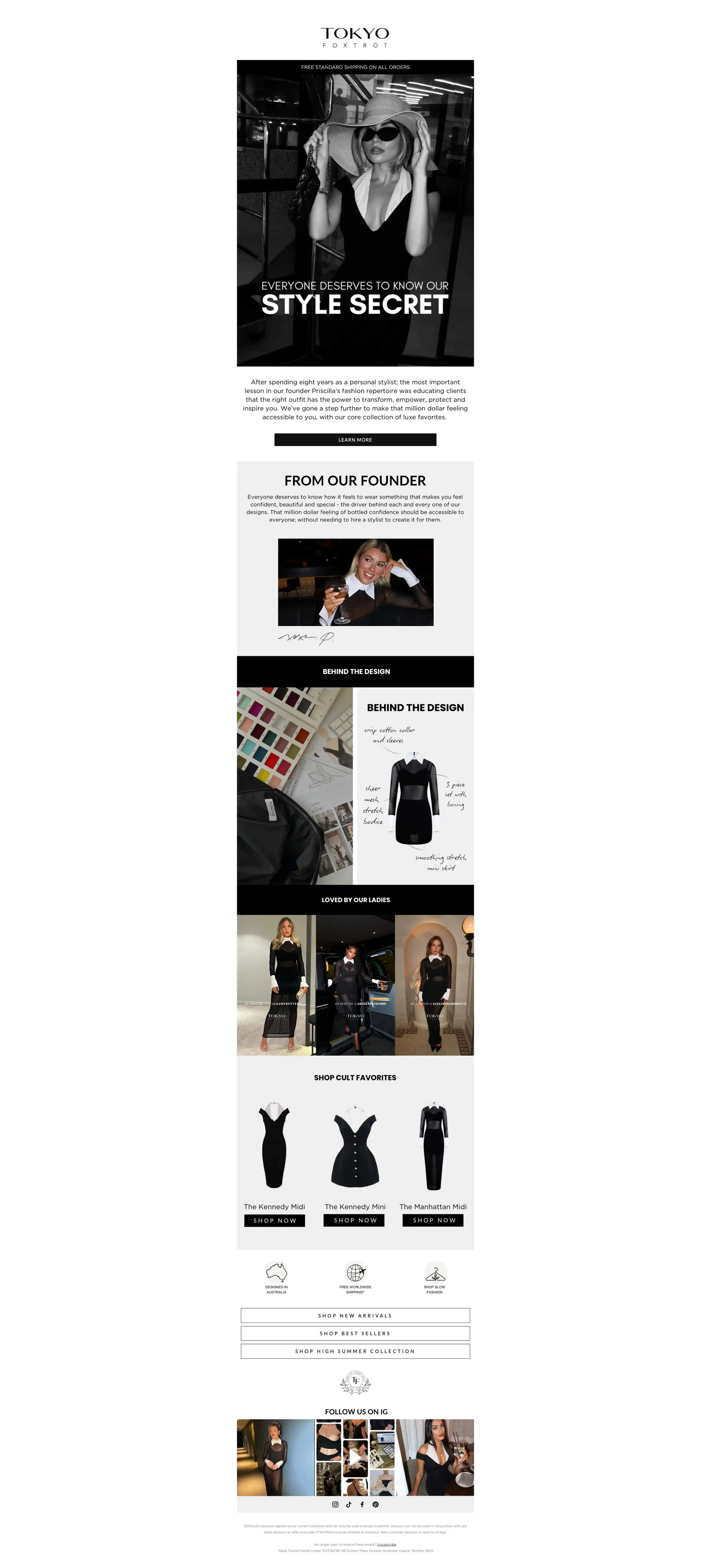 Tokyo FoxtrotAudit and custom design updates for flows + campaign creation and strategy for Australian fashion label.